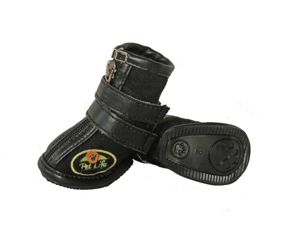 The Pet Life Ruff Tough Suede Dog Shoe Sneakers are composed of a Tougher Suede Outer shell and inner lined with Thinsulate insulation. Features a Back Zipper and Double Wrap Around Velcro for Easy On Off access and added support and comfort. These Dog Shoes offer a higher level of ankle support. Features Rubberized Grips. These Shoes are essential during the Colder and Hotter weather climates protecting your dogs paws by helping prevent Frostbite and Protects your Dogs Paws against the Hot Asphalt. Essential for Dogs in Recovery and especially elder dogs and puppies.