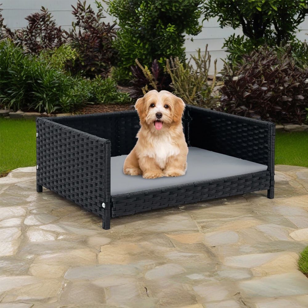 Rattan Dog Bed with Waterproof Soft Cushion for Medium Small Dogs Cats