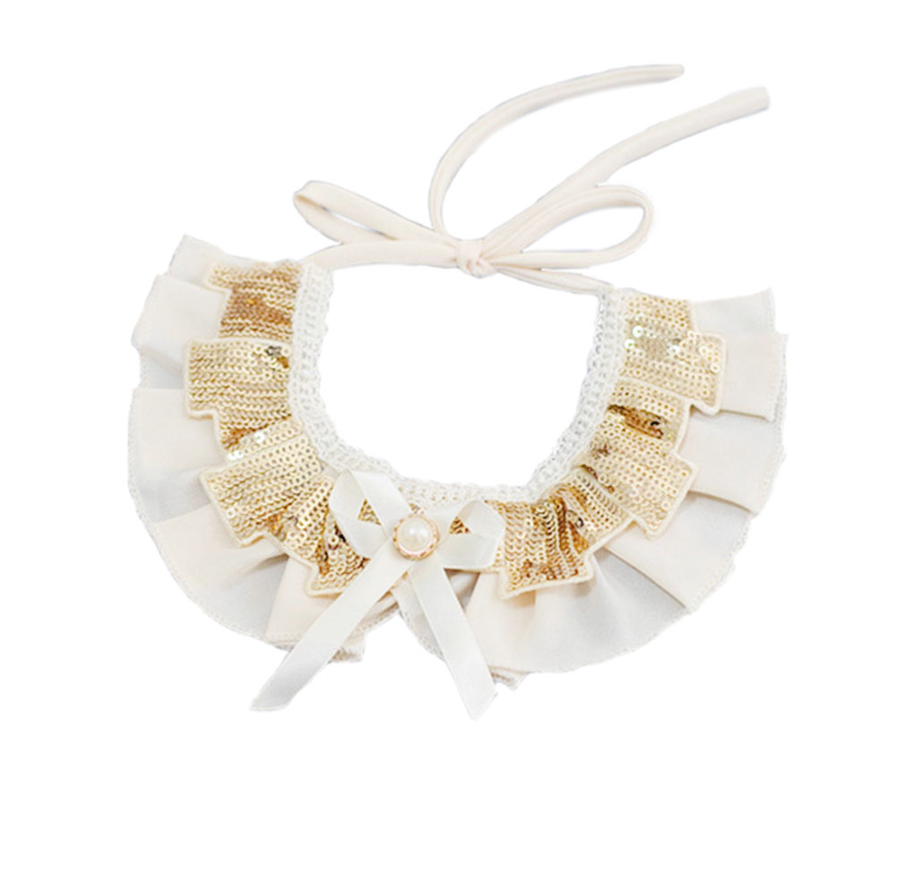 This princess pet collar is perfect for your kitten, puppy and other little pets (rabbit, goose, pet pig). Special designed as small dog collar and cat collar. Lace-up type, easy to wear and no damage to pet. Adjustable length, suitable for size small and medium pets. With these elegant collar, your pet looks adorable and noble for a daily walk. It is also perfect for party costume, wedding & holiday gifts. Its a great gift for pets. Saliva towel. Classic collar. Collar Charms.