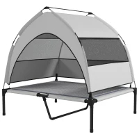 Give your pup a chill spot with PawHut elevated outdoor dog bed! This raised retreat keeps your dog 7.9" above ground - great for staying cool and dry. Three-sided canopy blocks harsh sun, while mesh sides let fresh air flow through. When adventure calls, it folds up neatly into the included carry bag for trips to the park or beach. Built tough yet comfy, it's your dog's new favorite nap zone anywhere, anytime. Watch their tail wag with joy as they lounge in shaded comfort!